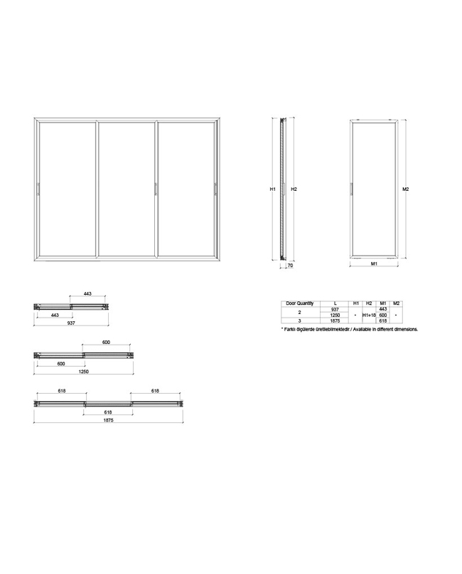 - Dış temperli cam, iç cam low-e kaplama olmak üzere 2 bölmeli 2 ve 3 kapı seçenekleri ile moduler sistem