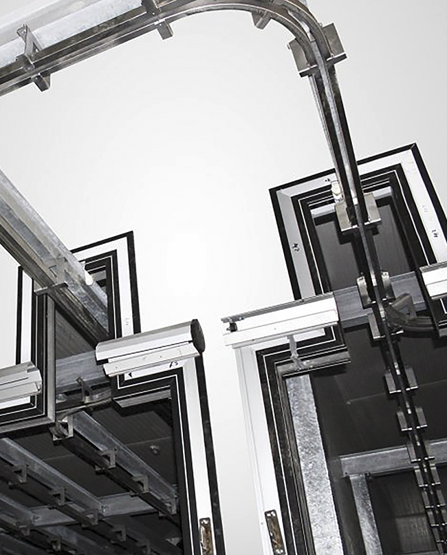 Genel olarak et entegre tesisleri için özel üretilmektedir. İşleme ve şoklama geçiş kapıları olarak ihtiyaca göre sağa ve sola kaydırma prensibi ile çalışmaktadır. Monoraylı kapılar isteğe göre menteşeli ve sürgülü olarak imal edilebilinir. 250x300 cm net geçişe kadar istenilen ölçüde üretim yapılabilmektedir.Teknik Detaylar
